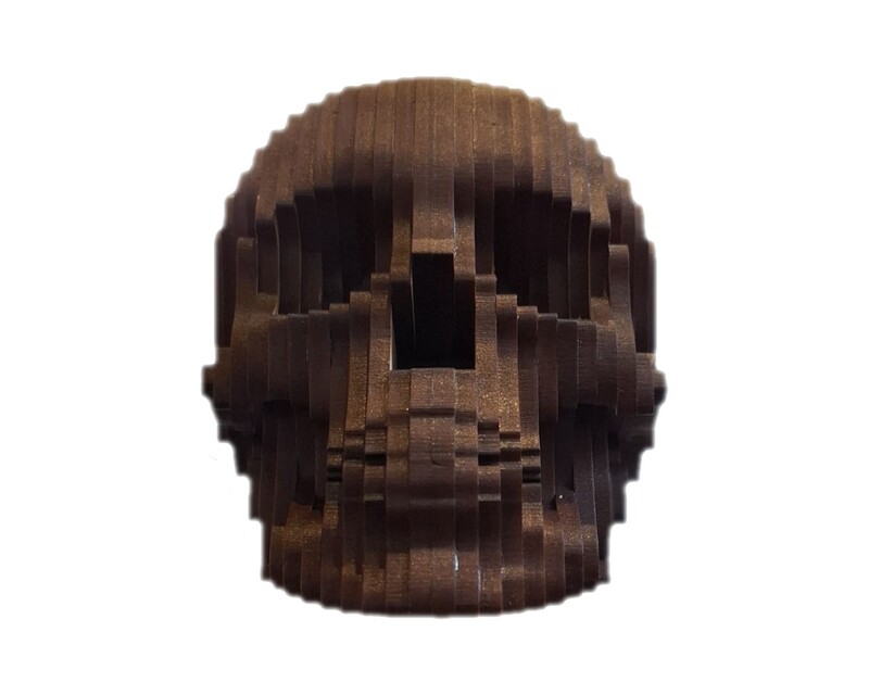 Decora tu oficina o sala de estar con este originalmente macabro ornamento. Elaborado en capas de MDF ensambladas con precisión y adheridas con pegamento ultrarresistente que asegura su durabilidad, este producto 100% hecho en México es el detalle perfecto para quienes deseen darle un toqué único a su escritorio o librero.