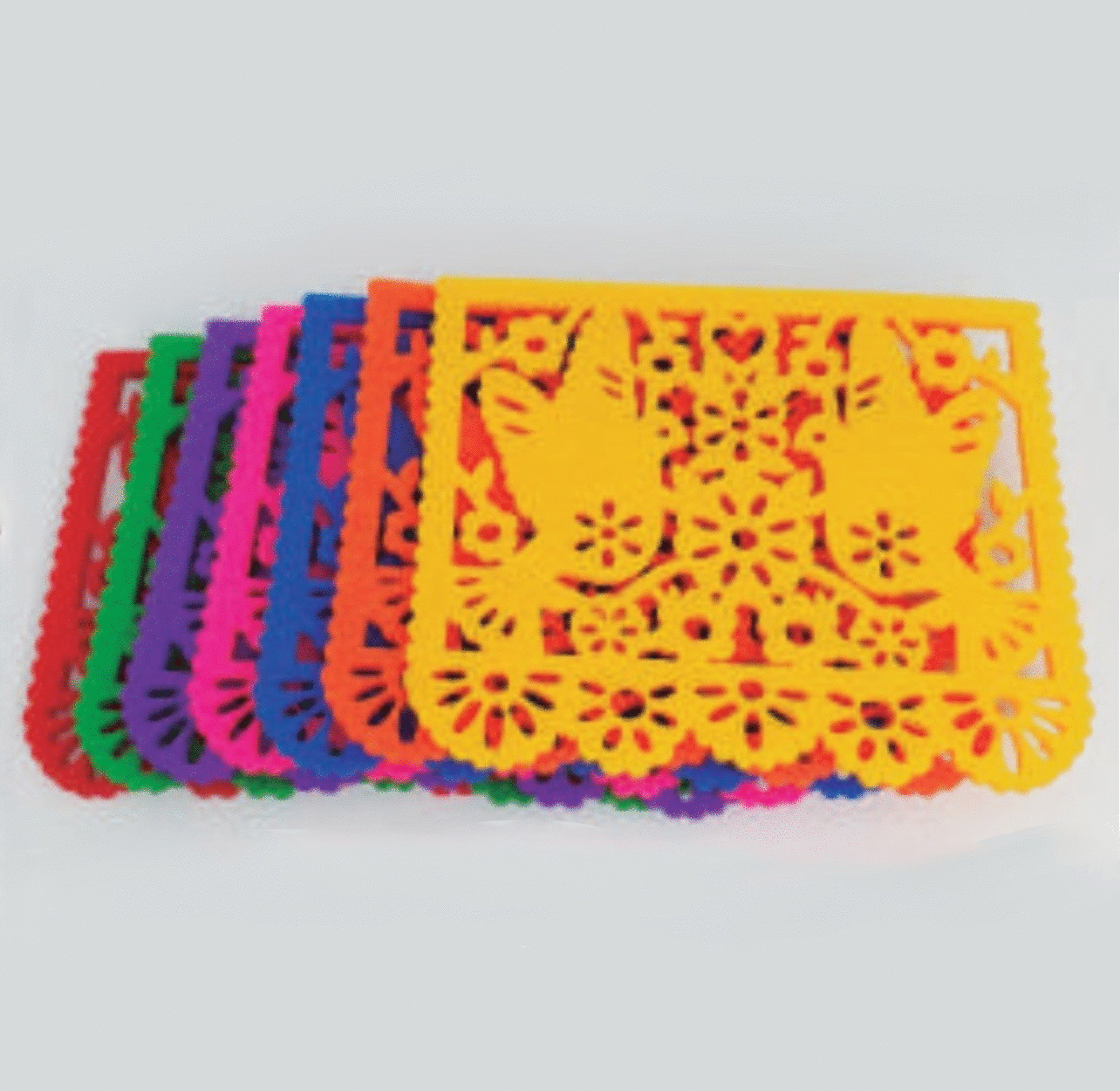 Dale un toque de color y tradición a tu mesa con este set de 4 portavasos de fieltro inspirados en el papel picado mexicano. Cada pieza está llena de detalles y frases que celebran lo mejor de nuestra cultura.