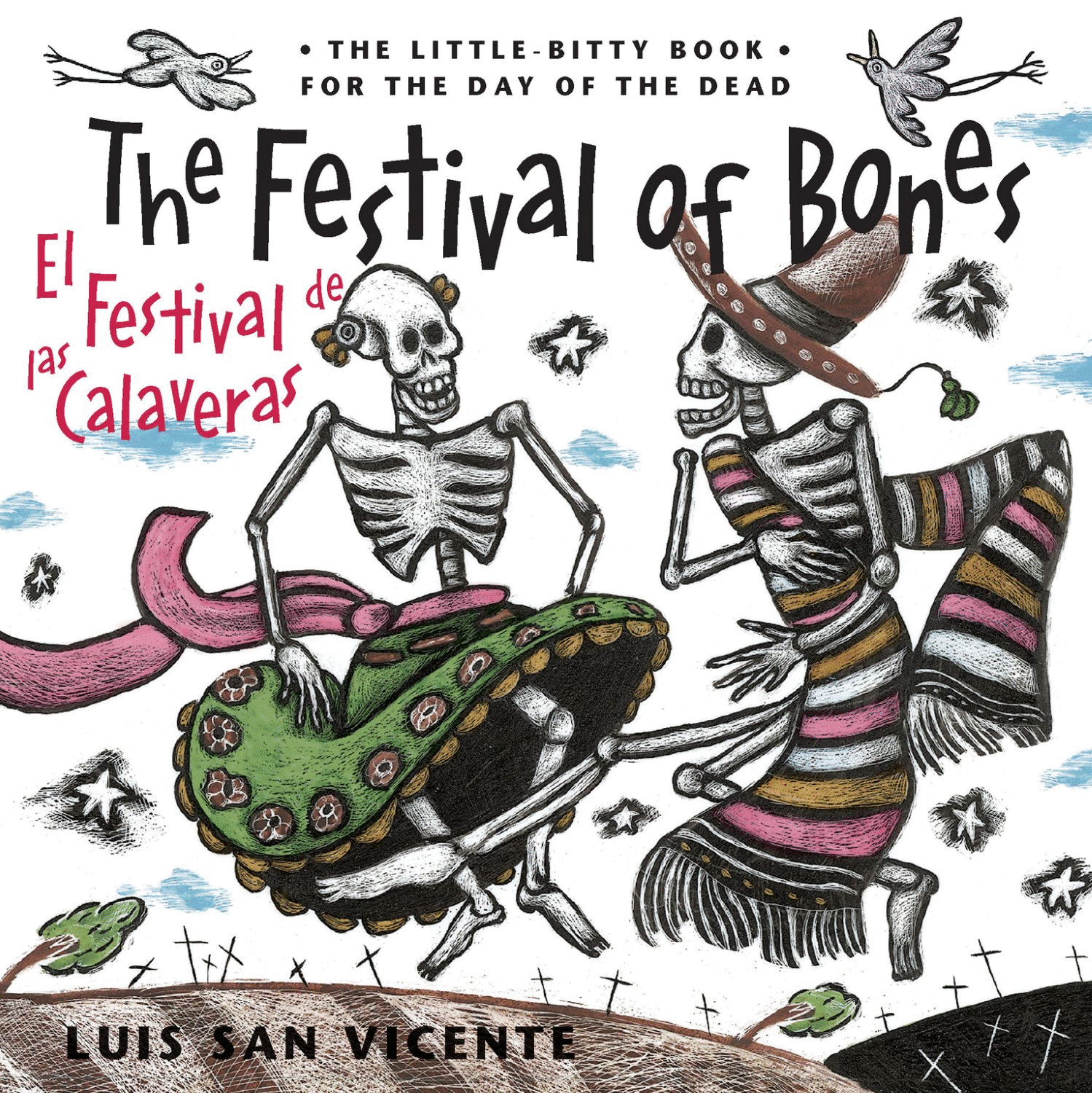 Si crees que el Día de Muertos es un momento de celebración para los vivos, ¡piensa cuánto más emocionante es para los invitados de honor! El reconocido artista mexicano, Luis San Vicente, permite que los niños se unan a la diversión con textos lúdicos y rítmicos en inglés y español. Su arte dinámico y extravagante imagina cómo las calaveras podrían deleitarse cuando son llamadas a regresar a la Tierra para esta festividad de recordar. También puedes aprender cómo se celebra el Día de Muertos en el mundo de los vivos: un epílogo útil detalla una breve historia del Día de Muertos en México y algunos consejos de cómo se puede celebrar, incluyendo cómo hacer un altar para seres queridos difuntos y recetas de delicias tradicionales como las calaveras de azúcar.