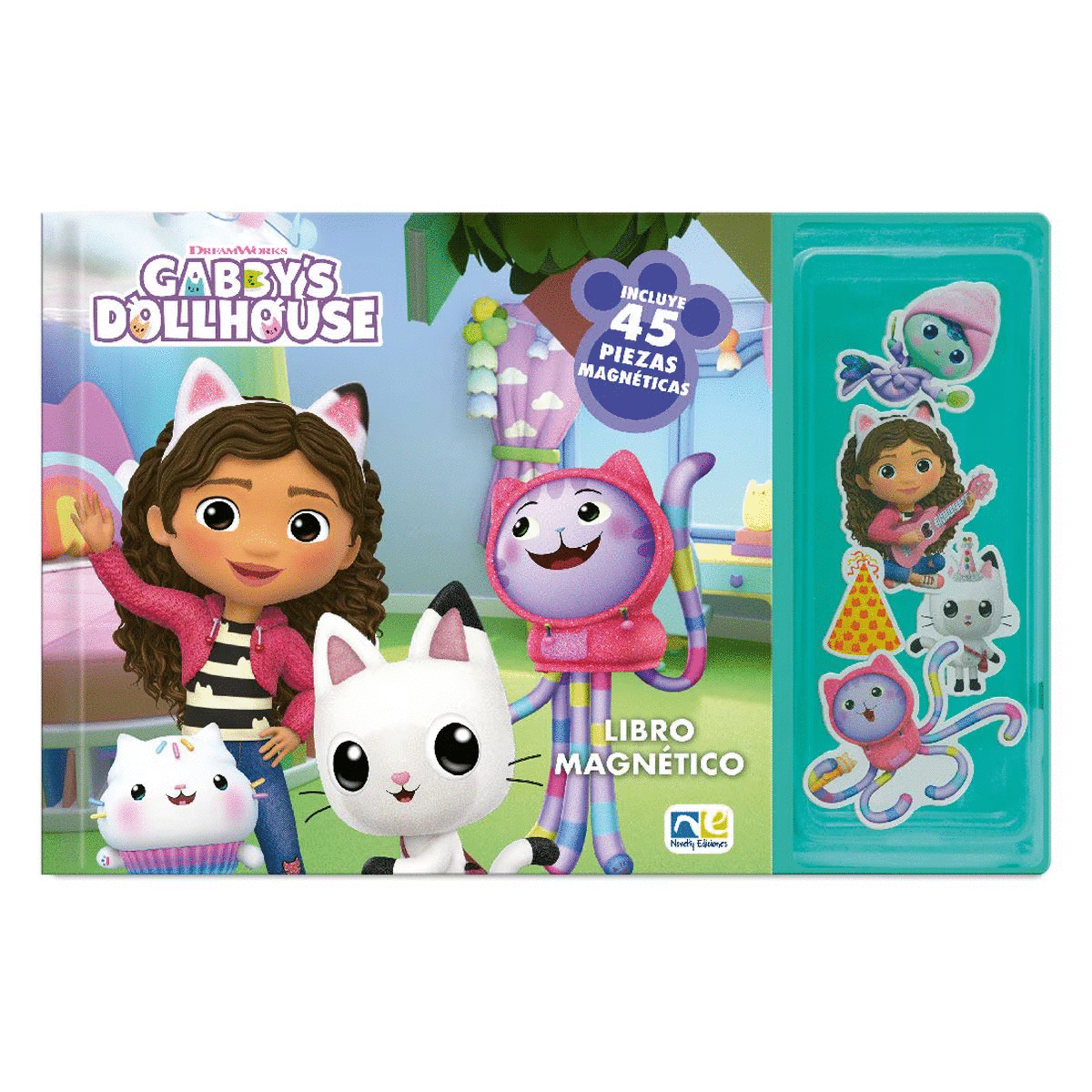 Gabby's Doll House es una experiencia única que combina juego y aprendizaje en un solo producto. Cada página ofrece un escenario diferente, como una casita de muñecas, una cocina, un jardín y muchos más, donde los niños pueden colocar las figuras magnéticas para construir sus propias historias y aventuras.