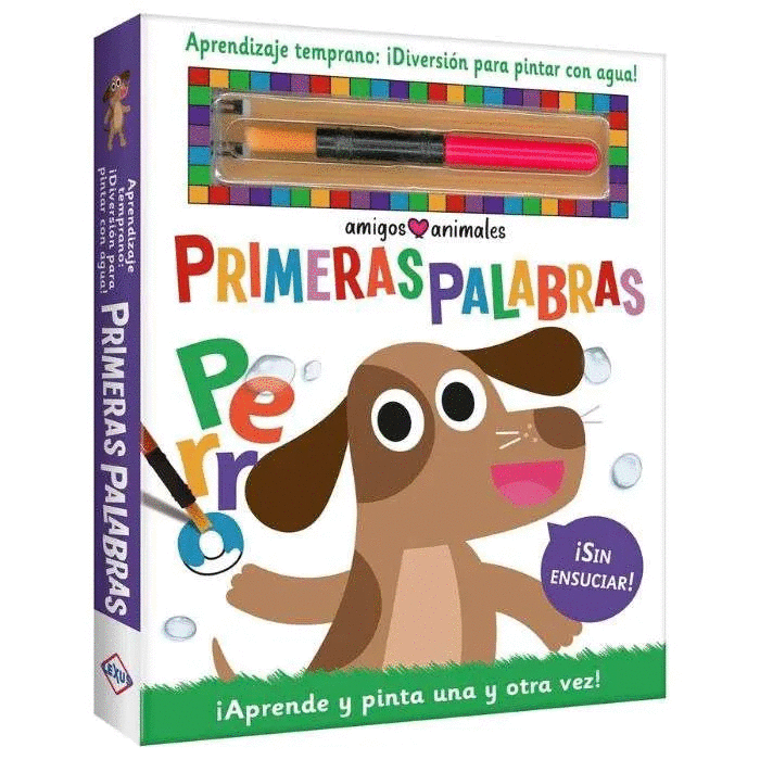 Pinta, traza y escribe tus primeras palabras con este libro de actividades reutilizable. Utiliza el pincel para pintar las letras e imágenes con agua, mira cómo los colores ocultos aparecen mágicamente.