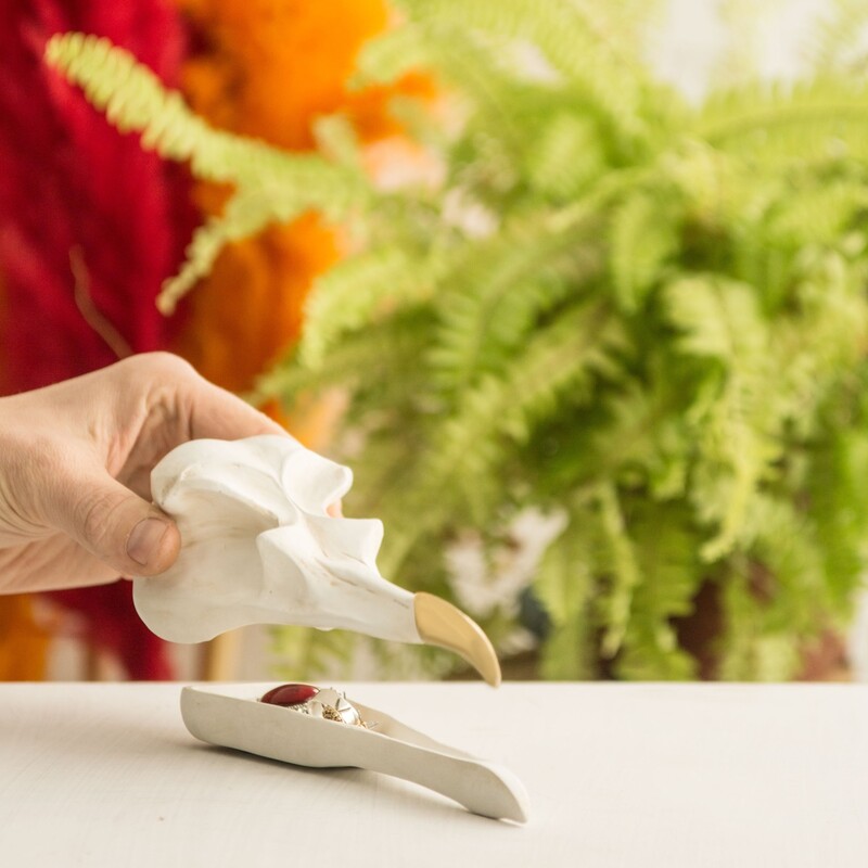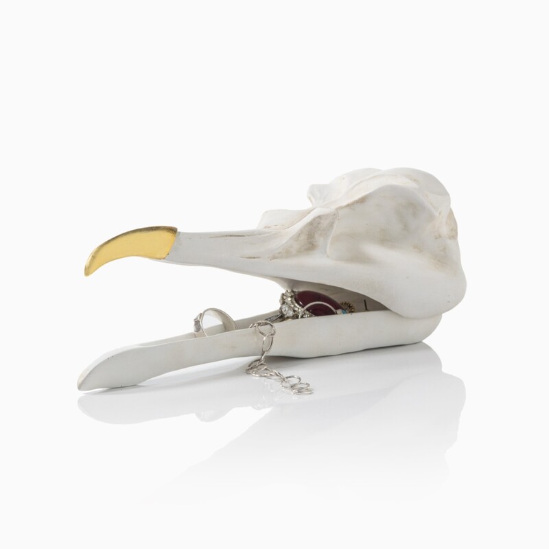 Ten tus artículos personales siempre a la mano. Sean tus llaves, anillos, pulseras, collares, reloj, monedas, chucherías y el contenido de tus bolsillos en general, este práctico joyero con forma de cráneo de pájaro mantendrá todo organizado en un mismo lugar. Además, es perfecto para decorar tus espacios favoritos y mantener en orden todos esos objetos perdedizos pero esenciales en tu día a día.