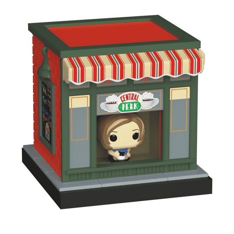 Sácala de su vitrina para que pueda acceder a la entrañable cafetería Central Perk. Las figuras de vinilo miden 0.9 y 1.95 pulgadas (2.3 cm y 5 cm aprox.) de alto.