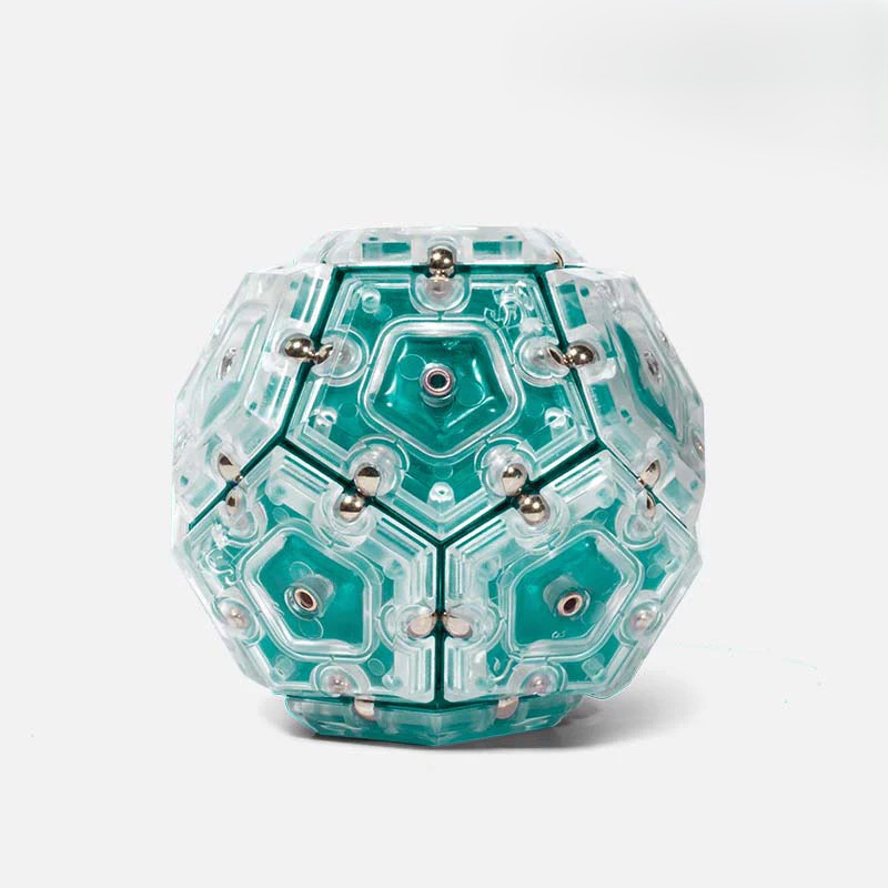 Este set se compone de 12 pentágonos imantados que pueden alinearse entre sí para formar una esfera perfecta ¡Apílalos, júntalos y vuélvelos a separar para crear distintas figuras!