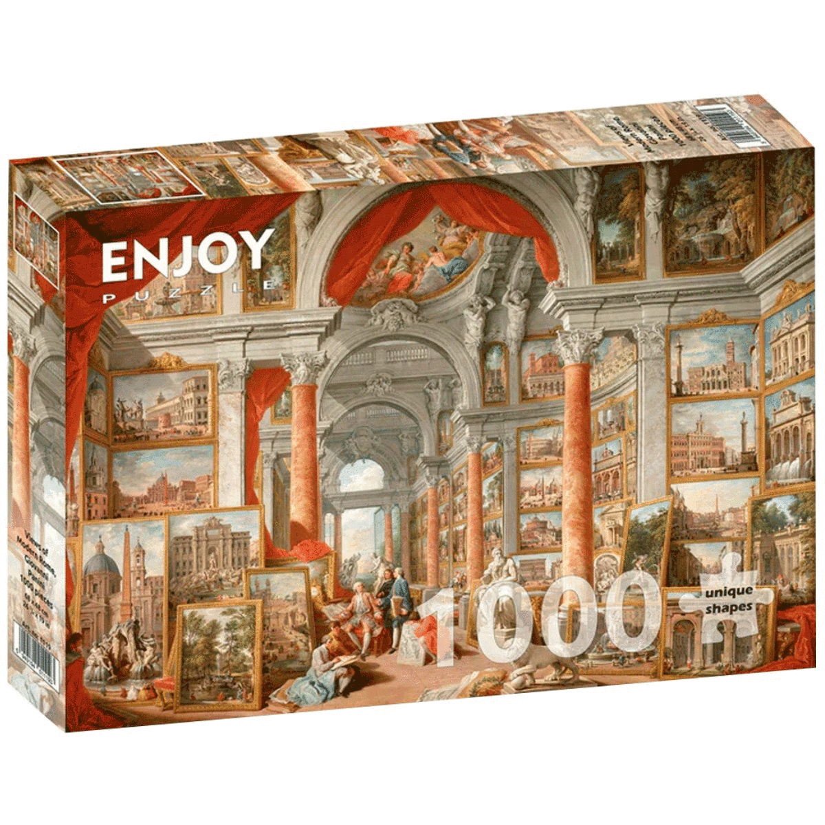 El rompecabezas Paolo Panini, Galería de Vistas de Roma Moderna de Enjoy Puzzle es una obra maestra que combina arte, historia y desafío en 1000 piezas. Este diseño rinde homenaje al famoso pintor italiano Giovanni Paolo Panini, conocido por sus vistas arquitectónicas y paisajes urbanos.