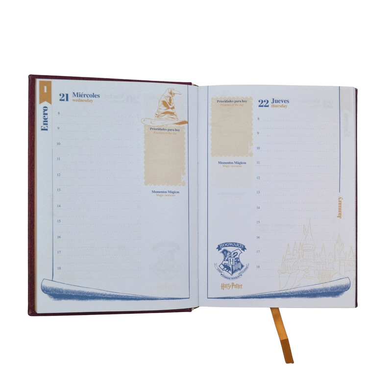 Se trata de una herramienta de organización práctica y cómoda que podrás llevar contigo a todas partes. Su diagramación de una página por día la hacen ideal para llevar una planificación a detalle de tu día a día. ¡El regalo perfecto para los fanáticos de Harry Potter y su mundo mágico!
