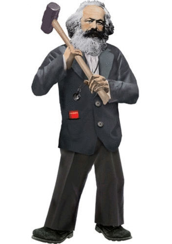 Tarjeta postal con la figura de Karl Marx. Incluye una hoja de estampas auto adheribles con frases célebres y otros mensajes.