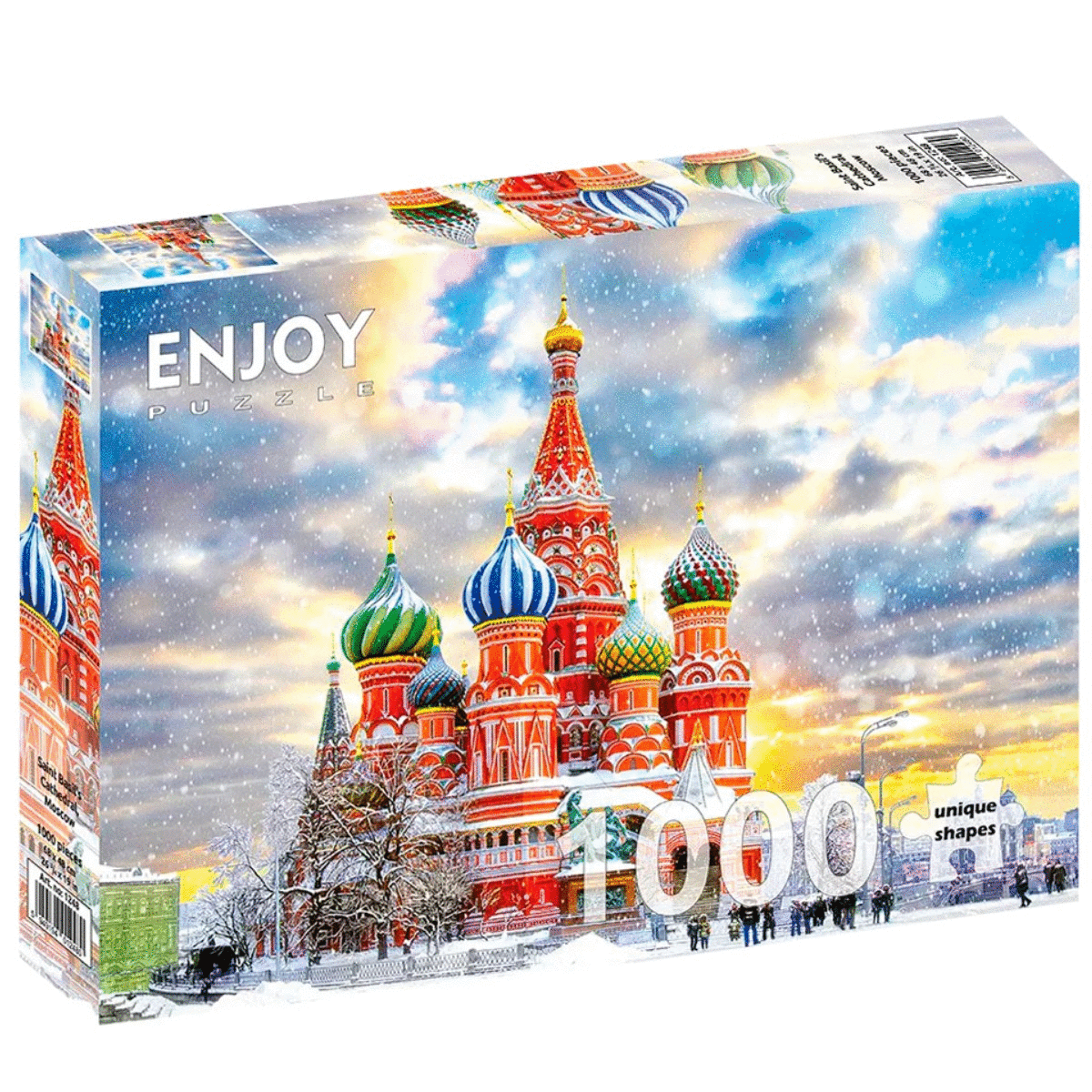 ¡Explora la belleza única de la Catedral de San Basilio de Moscú con este rompecabezas de 1000 piezas de Enjoy! Sumérgete en la extravagante arquitectura de las cúpulas de colores brillantes mientras armas cada pieza. Una experiencia que te transportará al corazón de la emblemática Plaza Roja de Rusia desde la comodidad de tu hogar.