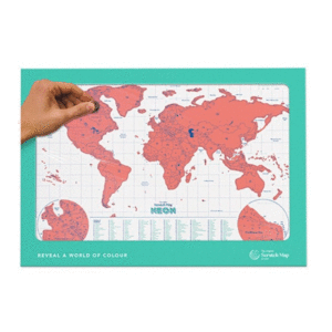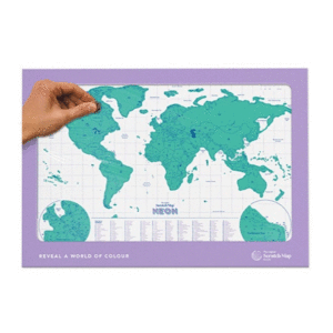 Marca aquellos lugares a los que has viajado y decora tu pared con un colorido mapa del mundo. Como si fuera una quiniela de rasca y gana, rasca el mapa para marcar todos los lugares que has visitado. Además, la edición Neón del Scratch Maprevelará un vibrante mapa en contraste debajo de la lámina superior.