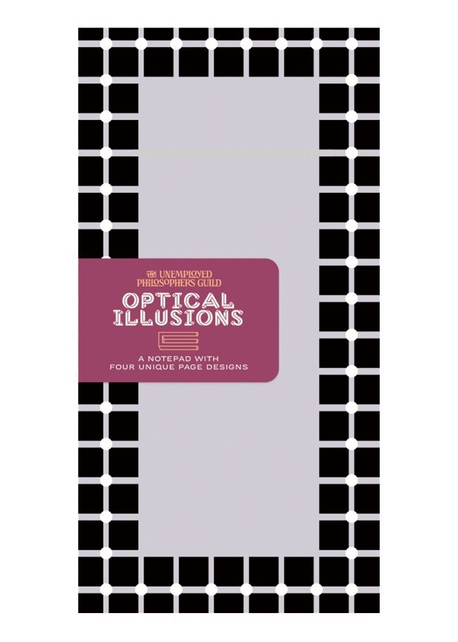 El bloc de notas Optical Illusions cuenta con cuatro diseños de únicos en sus páginas, perfectas para realizar anotaciones varias, listas furtivas, planes nefastos y cualquier ocasión en la que notes que las cosas pueden tornarse difusas.