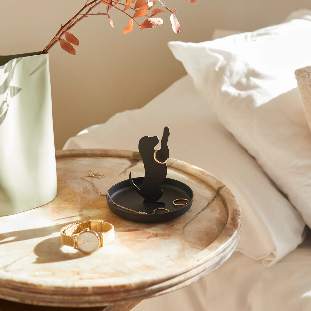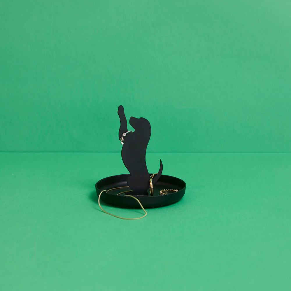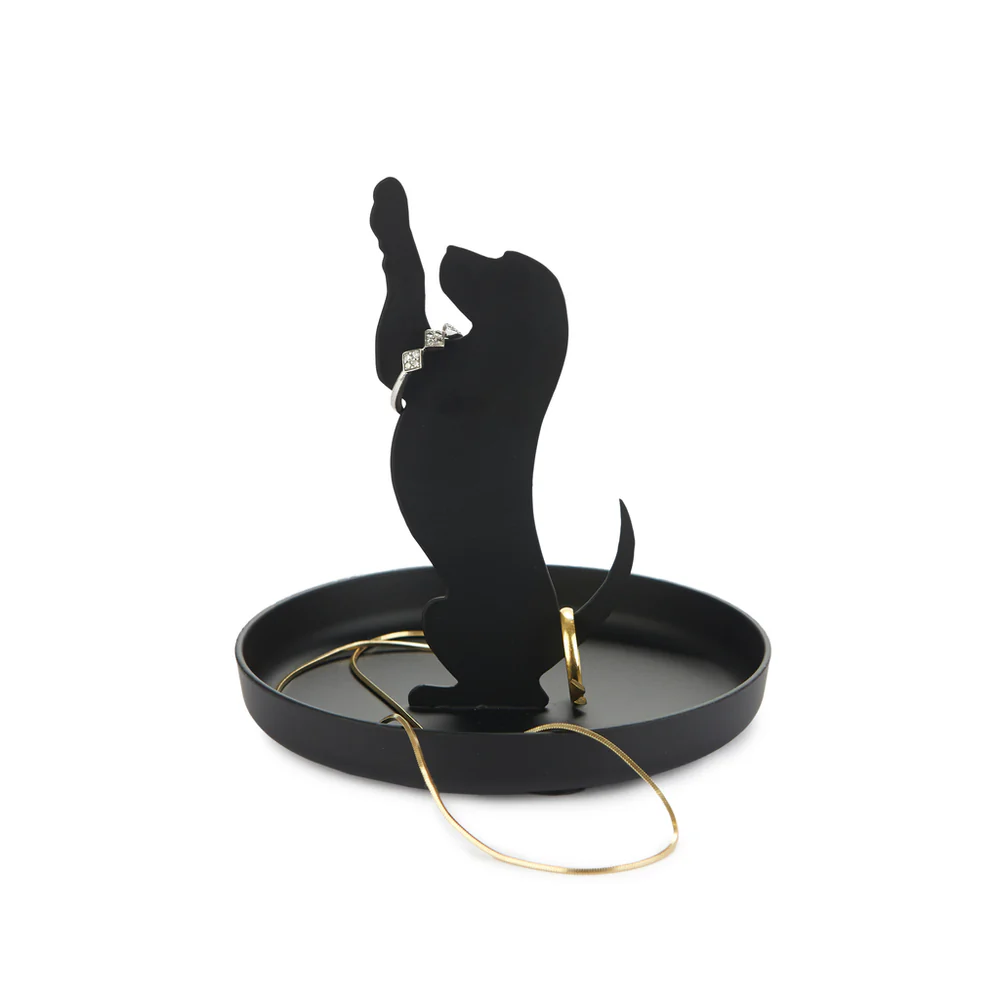 Este encantador soporte para anillos presenta una elegante silueta de perrito elaborada con metal duradero, que ofrece una manera elegante y práctica de exhibir tus anillos y pequeños tesoros.